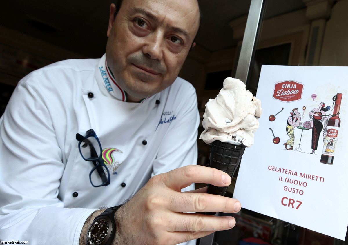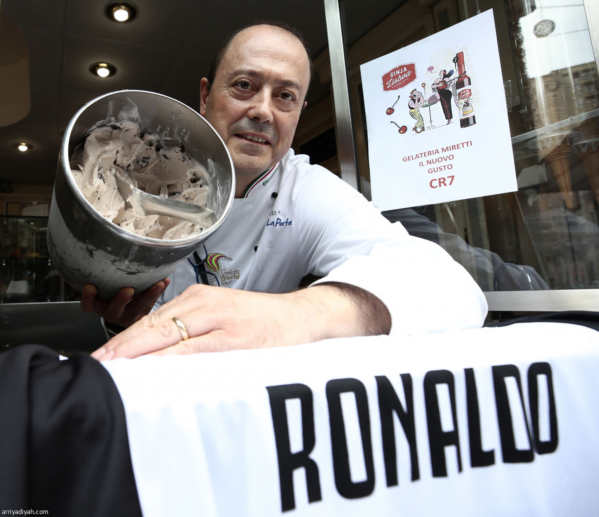 متجر مثلجات في تورينو الإيطالية يستحدث آيس كريم جديد بمناسبة انتقال النجم البرتغالي كريستيانو رونالدو إلى نادي يوفنتوس (تصوير - الفرنسية)..