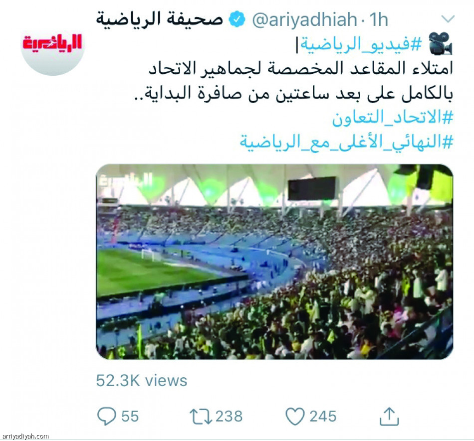 واكبت صحيفة "الرياضية"، عبر حسابها الرسمي في موقع التواصل الاجتماعي "تويتر"، أمس، نهائي مسابقة كأس خادم الحرمين الشريفين على ملعب الملك فهد في الرياض.